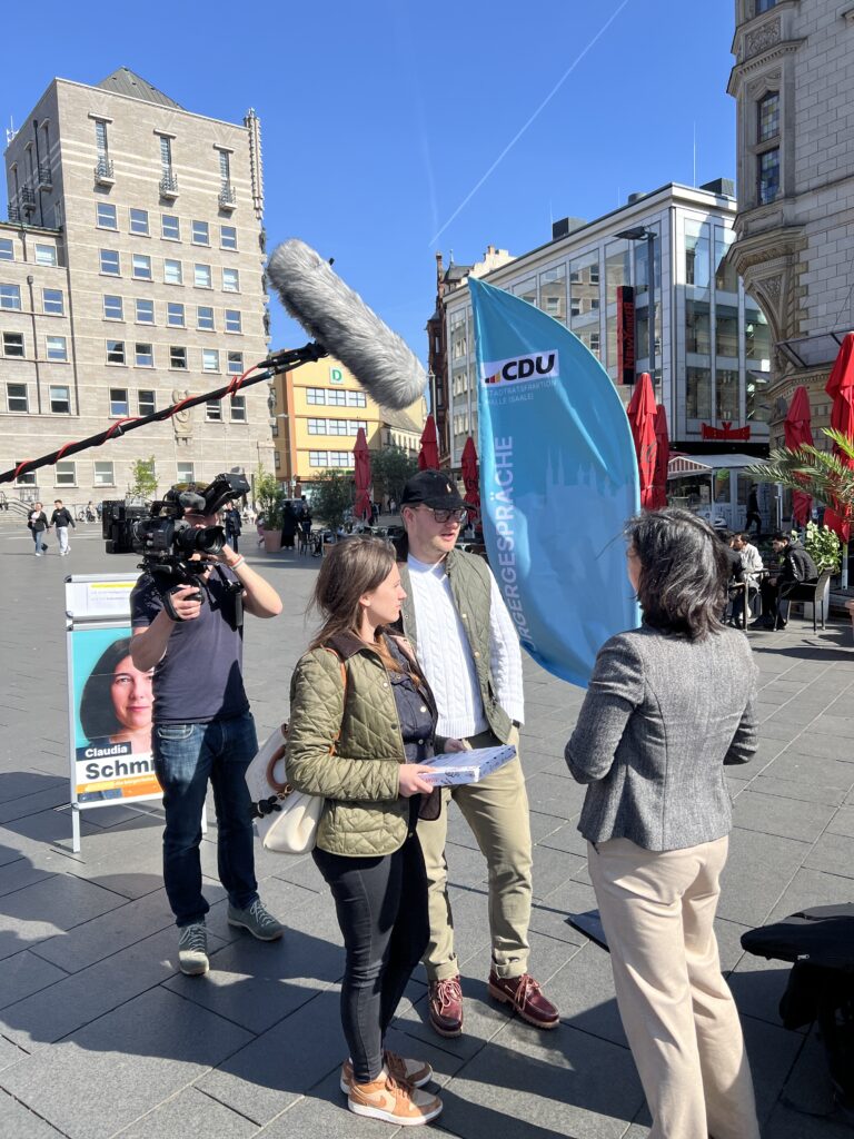 Begleitet wurde der Infostand auch von einem Kamerateam des MDR, das sich ebenfalls mit dem Thema Verkehrsentwicklung in Halle beschäftigt. Der Beitrag wird voraussichtlich am kommenden Dienstag in der Sendung „MDR Umschau“ ausgestrahlt.