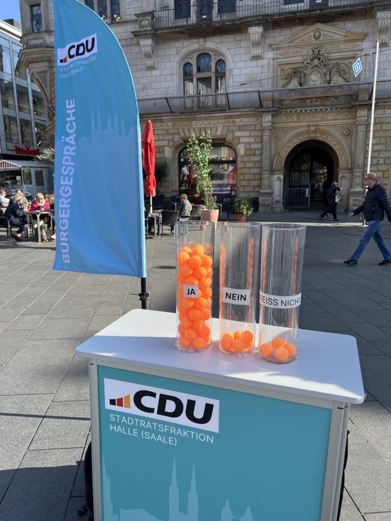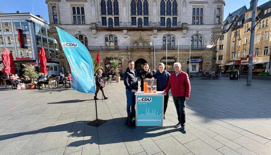 Auch bei unserem 7. Infostand auf dem Marktplatz sind wir erneut mit zahlreichen Hallenserinnen und Hallensern ins Bürgergespräch gekommen. Im Mittelpunkt stand diesmal die Frage: